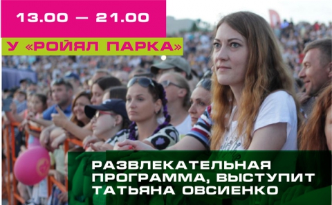 13.00 — 21.00 – развлекательная программа у «Ройял парка», хедлайнер концерта – Татьяна Овсиенко.