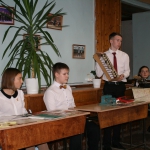 Вторым испытанием очного этапа был конкурс эрудитов. Вытянув билет, участники должны были объяснить, как они понимают термины, связанные с музейной тематикой: раритет, экспонат, музейный предмет, обзорная экскурсия. Члены жюри интересовались, почему ребята работают в музее, какие у них есть тематические экскурсии, какие любимые экспонаты.