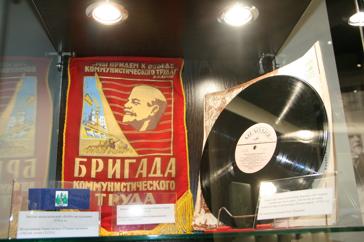 А также личные вещи строителей Байкало-Амурской магистрали – сапоги, стройотрядовская куртка новосибирского медицинского института и БАМовский значок.