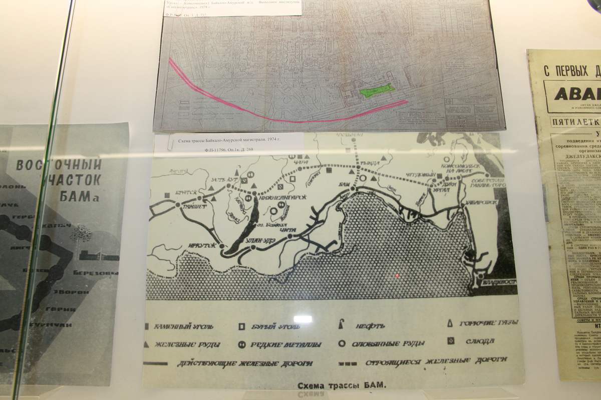 ГАНО впервые в своей истории демонстрирует документы и фотографии по теме строительства Байкало-Амурской магистрали. На выставке представлены более 70 документов и фотографий, задействованы материалы личного фонда исследователя вечной мерзлоты В.П. Фролова (Ф.Р-2027), фотофондов ГАНО (Ф.Р-2190 и Ф.П-11796), личные вещи строителей БАМа.