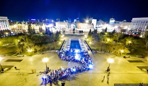 Финалом акции станет флешмоб на набережной возле Коммунального моста. С помощью волонтеров участники выстроятся в пятиконечную звезду и зажгут свечи. Произойдет это ровно в полночь. Фотографы будут снимать эту акцию с моста. Так Новосибирск встретит День Победы.