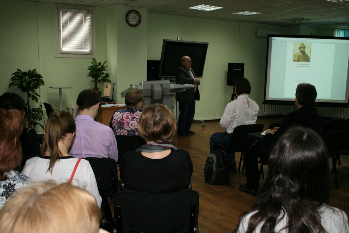 Перед педагогами, библиотекарями, школьниками и студентами выступил Баяндин Владимир Ильич, кандидат исторических наук, ученый секретарь Новосибирского государственного педагогического университета, член Правления Новосибирского регионального отделения Российского общества историков-архивистов.
