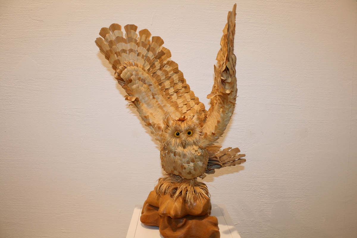Выставка скульптур из древесной стружки «Пером и топором» открылась в Музее природы – филиале Новосибирского государственного краеведческого музея.