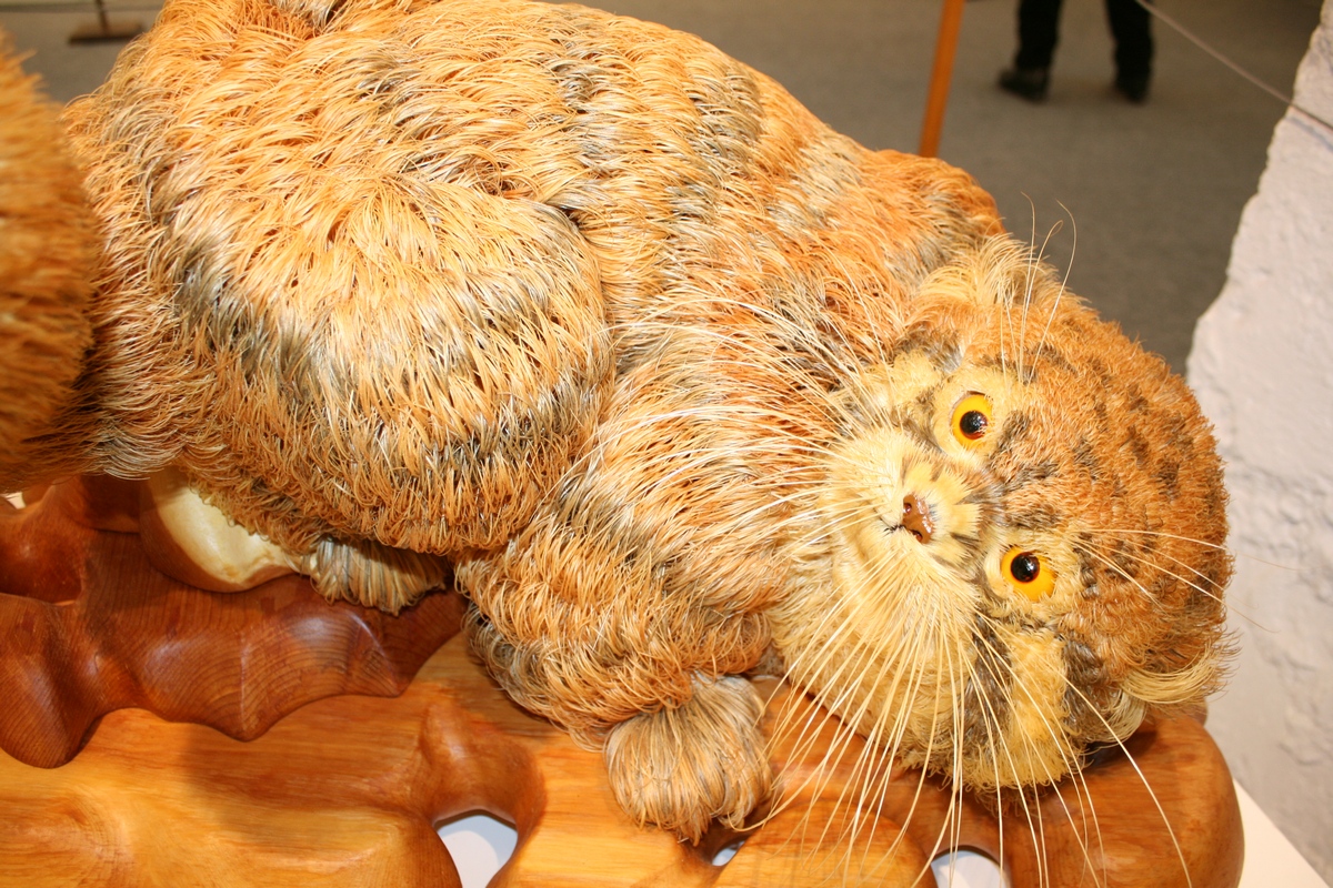 На выставке представлено 15 работ талантливого мастера, которые настолько реалистичны, что кажется совы, орлы и глухари взмахнут крыльями и полетят, а горностаи, куницы и белки спрячутся за дерево. На изготовление одного шедевра уходит примерно 4-6 месяцев при ежедневной многочасовой работе. Скульптор утверждает, что особенно сложно работать над фигурками пушных зверей. Так, на изготовление кота манула скульптор потратил 4 года 7 месяцев. Манул выполнен из более 1 миллиона ворсинок, которые Сергей Бобков приклеивал в течение трех лет. Результат превзошел все ожидания. Рука невольно тянется к коту, чтобы его погладить, настолько он кажется живым. «Мы с ним за эти годы сроднились», – улыбается Сергей Васильевич.