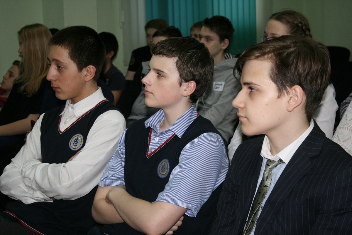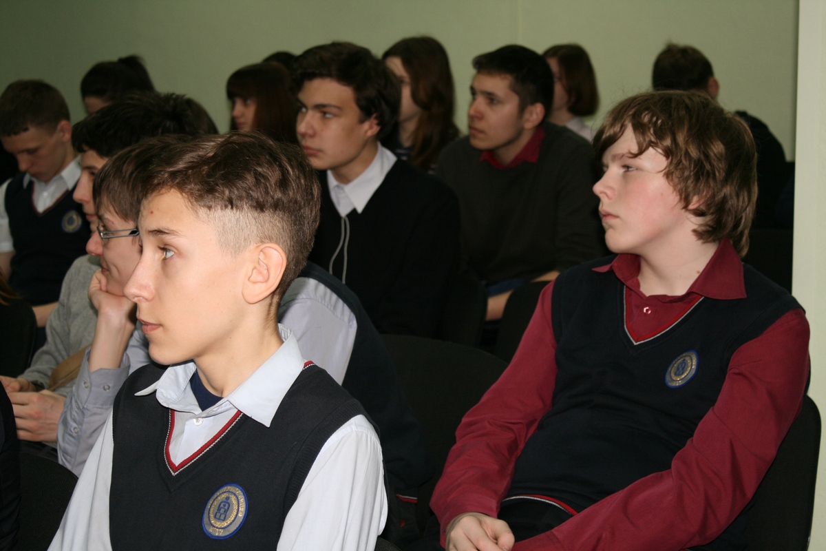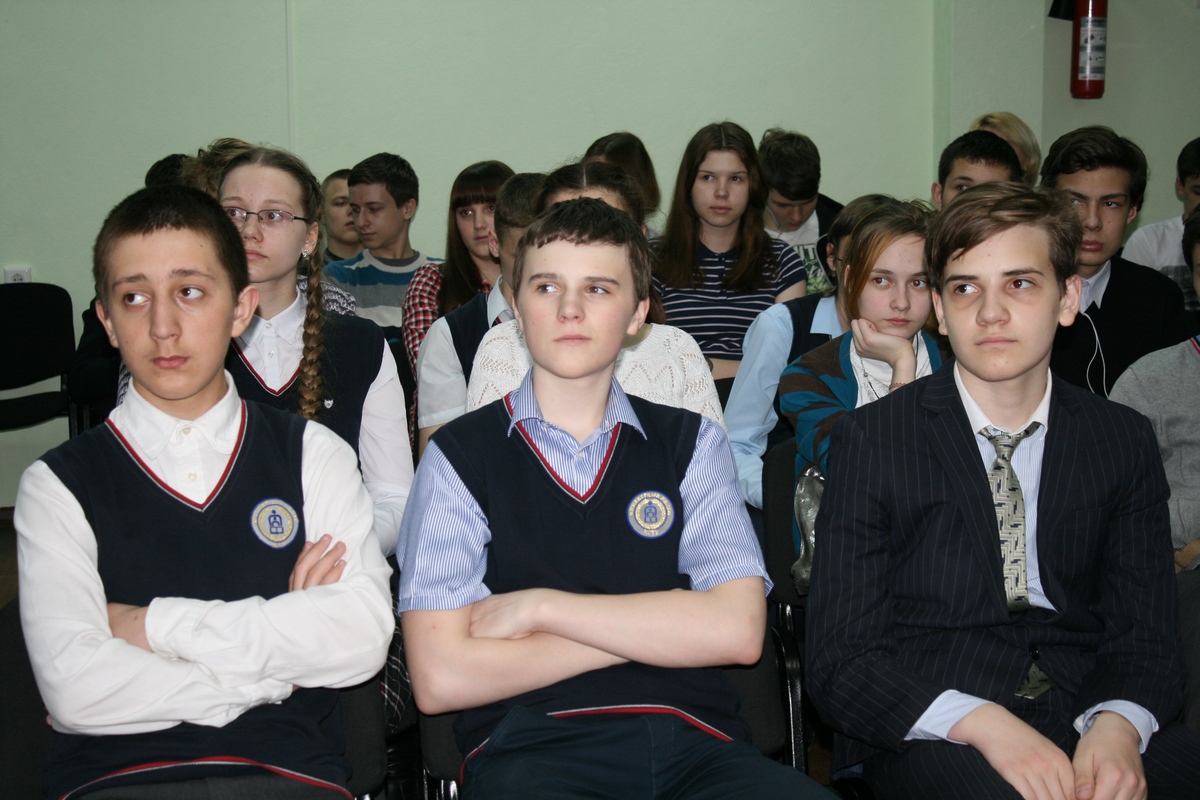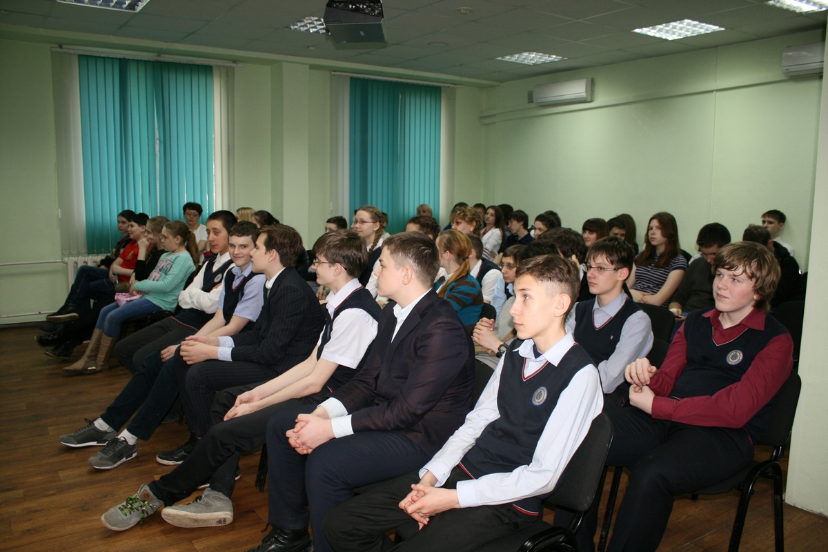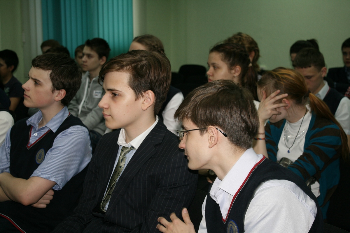 В завершение лекции, учащиеся посмотрели номинированный на "Оскар" анимационный фильм «Мы не можем жить без космоса». Режиссер мультфильма житель Санкт-Петербурга Константин Бронзит.