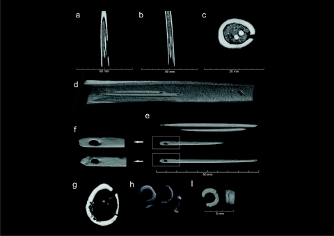 2. Томографическая съёмка двух игольников с иглами и бусинами внутри возрастом 5 тысяч лет, фото ИАЭТ СО РАН