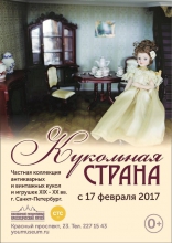 Выставка знакомит посетителя с игрушками и куклами разных эпох и народов. «Кукольная страна» — это выставка о детстве, воспоминаниях, о том, во что когда-то играли наши бабушки и дедушки, мама и папы. Антикварные и винтажные куклы, игрушки, кукольная мебель и посуда промышленного и кустарного производства, созданные в разные периоды во Франции, Германии, США, Швеции, Японии и СССР — многие из экспонатов будут представлены широкой публике впервые.
