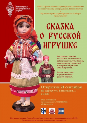 Выставка «Сказка о русской игрушке» из личной коллекции заслуженного работника культуры России, руководителя творческой мастерской «КрАсота» Оксаны Выхристюк откроется в Музее истории старообрядчества Сибири.