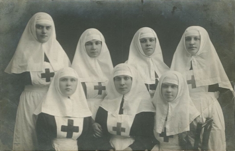 На фронтах Первой мировой работали почти 20 тысяч сестёр милосердия. В конце первого года войны насчитывался 71 госпиталь и около 120 лазаретов. Раненные солдаты ласково называли сестёр «белыми голубками». Помощь и сострадание больному и раненому не ограничивалось лишь периодами войны, милосердные сёстры помогали людям и в мирные дни. Их жизненным девизом стали слова: «Высшее и лучшее призвание женщины — исцелять, часто помогать и всегда облегчать» жизнь страждущего.