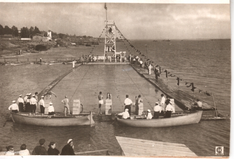 Уже зимой 1948 на месте нынешней Михайловской набережной строится первая хоккейная коробка. Место это всегда пользовалось популярностью у горожан. Еще с конца 1920-х годов здесь, по адресу Большевистская, 12, находились водно-лыжная станция с открытым плотом-бассейном прямо на воде, вышками для прыжков в воду. И зимой, и летом из вагончика трамвая №1, около станции, всегда высыпала куча лыжников или гребцов и просто отдыхающих.