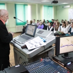 Перед школьниками и педагогами выступил известный историк, доктор исторических наук, профессор Гуманитарного института НГУ, заведующий сектором истории второй половины XVI – начала ХХ вв. Института истории СО РАН Шиловский Михаил Викторович.