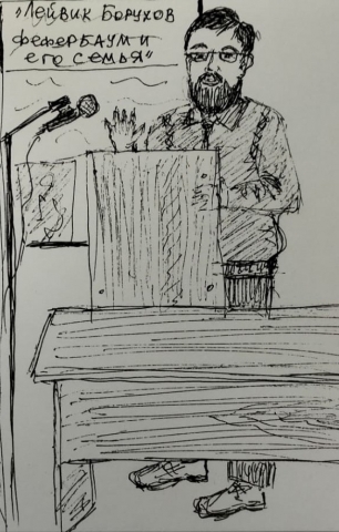 Небольшой творческий штрих к конференции. На ней велась не только фото и видеосъемка. И.Б. Сыроквашина создавала небольшие графические черно-белые зарисовки всех докладчиков.