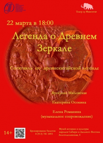 После постановки зрители вместе с археологом, кандидатом исторических наук Сергеем Владимировичем Алкиным обсудят, какое место занимали бронзовые зеркала в культуре Древнего Китая и что они могут рассказать археологам о культуре средневековых жителей Сибири.