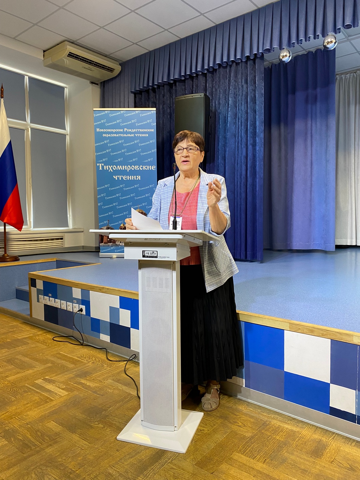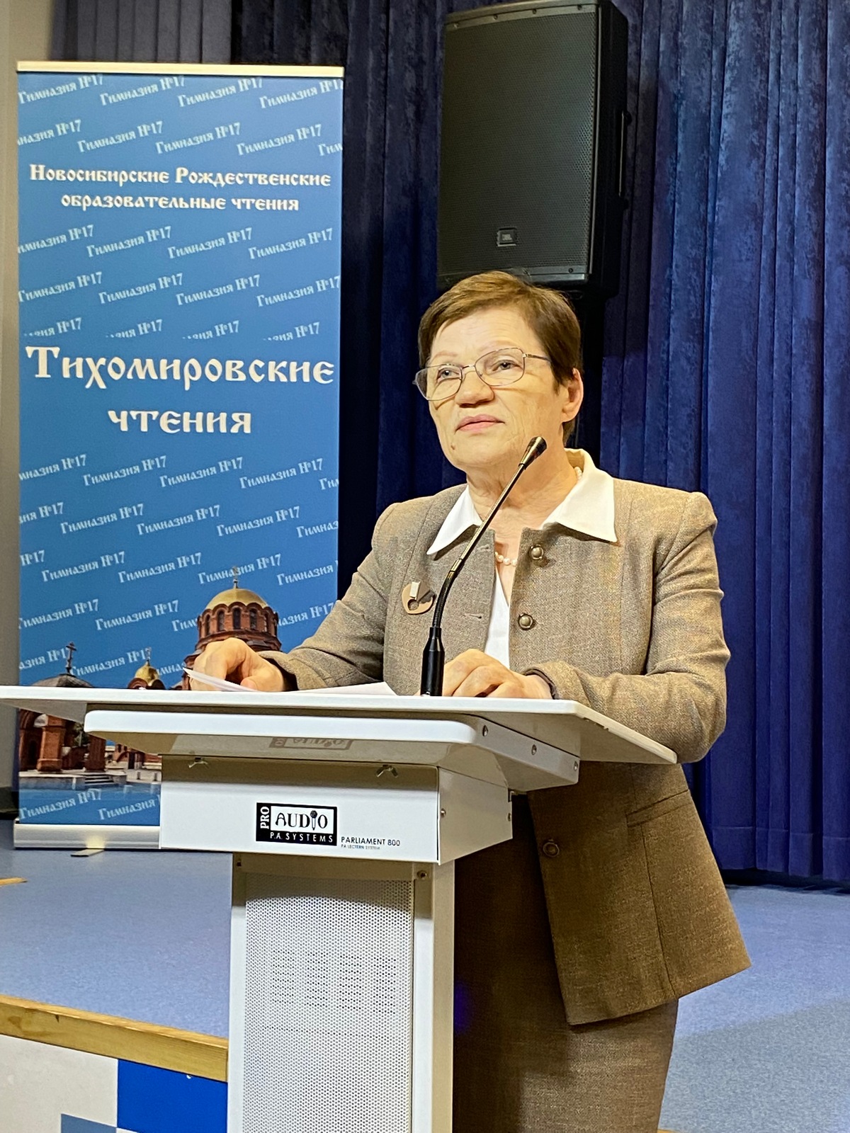 С приветственным словом к собравшимся обратилась директор Новосибирской классической гимназии № 17 Нина Демьяновна Кляшторная. Она пожелала участникам Тихомировских чтений интересных открытий, дискуссий, встреч с единомышленниками.