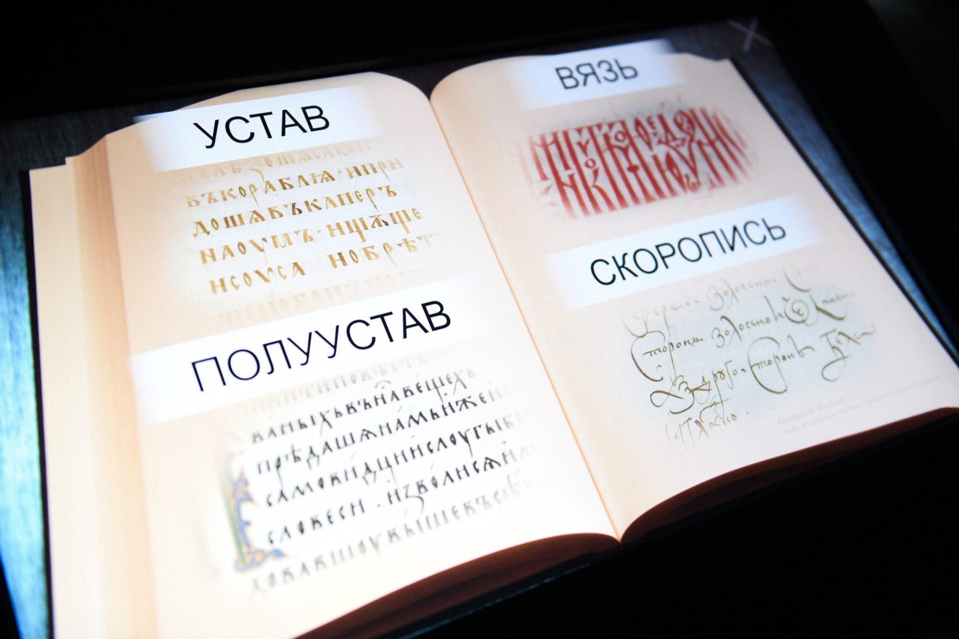 Посетители узнают, при каких обстоятельствах появилась славянская письменность, кто был ее создателем, чем глаголица отличалась от кириллицы, зачем нужна была вязь, где использовалась скоропись и много других секретов русской словесности. В практической части с помощью специально разработанного приложения можно попробовать свои силы в русской каллиграфии, написать фразы из древнерусских рукописных памятников, используя различные старинные виды письма.