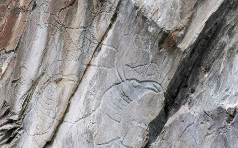 Томская писаница, Кузбасс. Изображение химеры — медведя с волчьей пастью. Фото ИАЭТ СО РАН