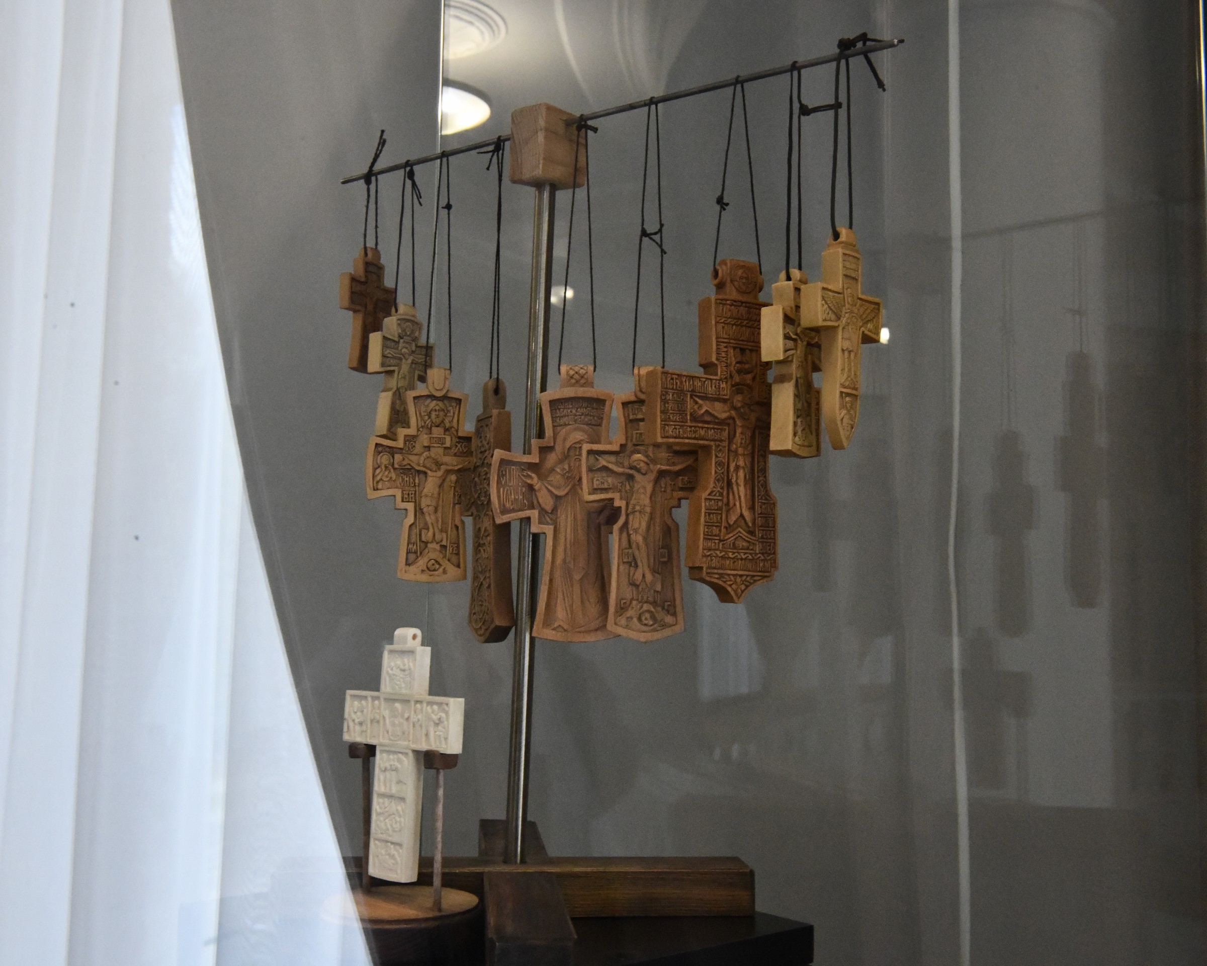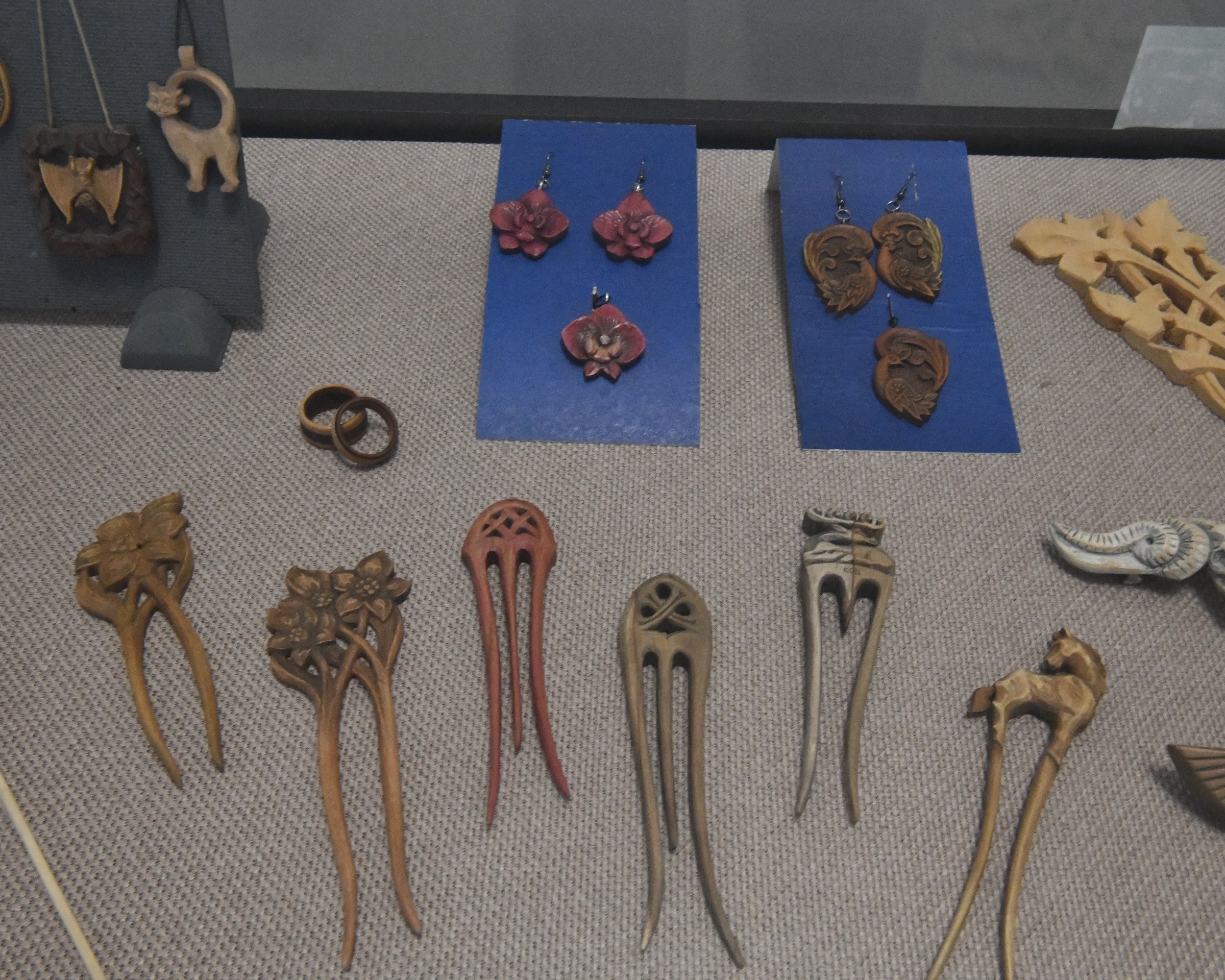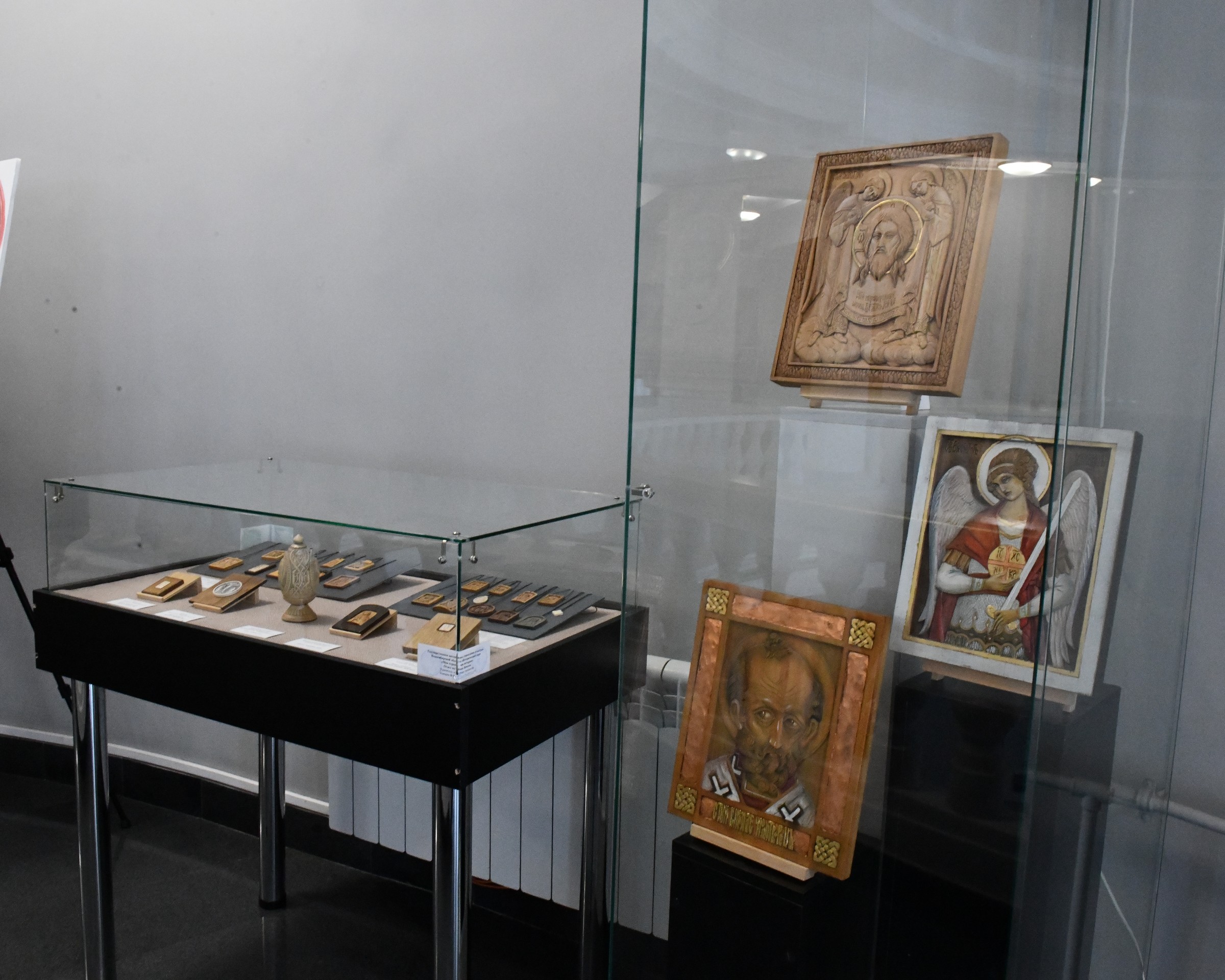 На выставке представлено большое количество деревянных изделий: традиционные народные игрушки в стиле домовой резьбы, резная деревянная икона, миниатюрная скульптура, женские украшения и заколки. За годы творческой деятельности Юрий Васильевич достиг больших успехов. Неоднократно работы мастера экспонировались на межрегиональных и персональных выставках.
