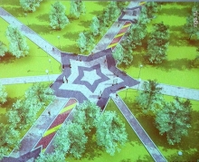 Особое внимание в проекте уделено центральной аллее сквера. Главная площадь будет оформлена щитами, рассказывающими о боевом пути и подвигах сибиряков-гвардейцев. Саму центральную площадь решено оформить в виде гвардейской звезды, подобные звезды проектировщики предложили рассыпать по дорожкам сквера.