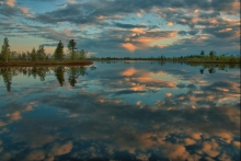 Справка: Васюганские болота возникли около 10 тыс. лет назад и с тех пор постоянно увеличиваются, сейчас их площадь — 53 тыс. кв. км. На болотах расположены около 800 тыс. небольших озер, также здесь содержатся огромные запасы торфа. Из редких видов животных на болотах обитают северный олень, беркут, орлан-белохвост и др., из растений — венерин башмачок крупноцветковый, липарис Лезеля.