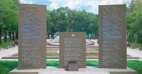 Понятное дело, что на строительство нового монумента в бюджете деньги не заложены, поэтому было решено возводить его методом народной стройки. На пилонах монумента будут высечены фамилии первомайцев, защищавших нашу страну в годы Великой Отечественной войны. Их число — 6 189. Отдельный пилон будет посвящён первомайцам, принявшим участие в ликвидации аварии на Чернобыльской АЭС, — всего 95 человек. На другом пилоне будут высечены фамилии 530 участников военных событий в Афганистане и других локальных войнах. Списки составлены на основании официальных данных военного комиссариата по Первомайскому и Советскому районам, а также согласованы с руководителями общественных организаций чернобыльцев и вооружённых сил.