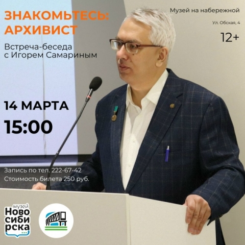В субботу, 14 марта в 15:00 в гостях в Музее на набережной будет Почётный архивист Российской Федерации, ведущий архивист Государственного архива Новосибирской области Игорь Самарин.