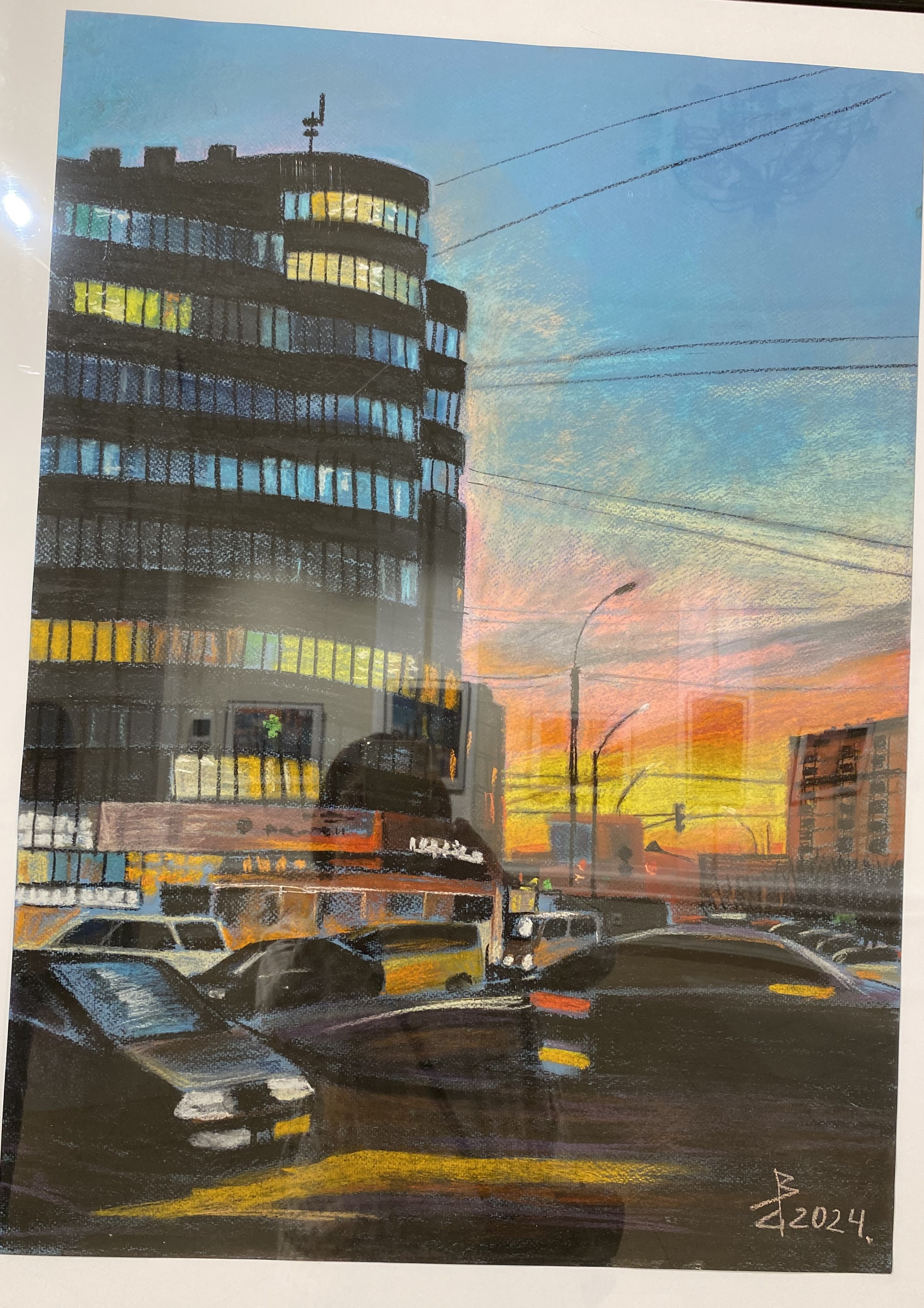 На выставке представлены серии её работ, выполненные сухой и масляной пастелью, а также цветными карандашами. На картинах изображены простые вещи: дворы, зимние улицы Новосибирска, ночной проспект, Обь, но в ином ракурсе.