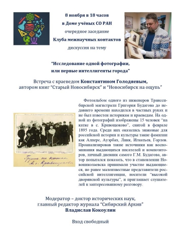 8 ноября в 18 часов в Доме ученых СО РАН состоится очередное заседание Клуба межнаучных контактов.