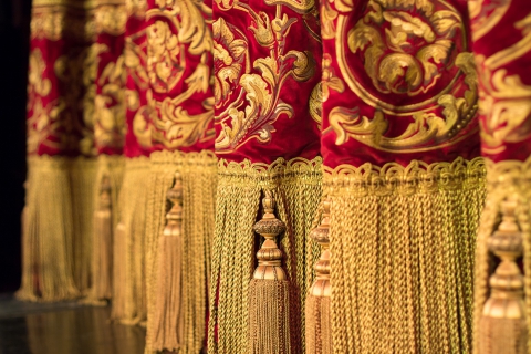 В зале музея представлены костюмы из спектаклей разных лет. В их числе коронационное одеяние Бориса Годунова и платье Марины Мнишек из грандиозной постановки оперы «Борис Годунов» 1990 года, костюмы к спектаклю «Царская невеста», созданные по эскизам легендарного театрального художника Альбина Ивановича Морозова, костюмы к спектаклю «Отелло», элегантные, богато декорированные балетные пачки, которые были созданы Яной Серебряковой для Гран Па из балета «Пахита», костюмы и предметы бутафории к спектаклям «Шехерезада», «Баядерка» и другим постановкам театра.