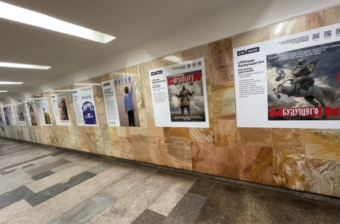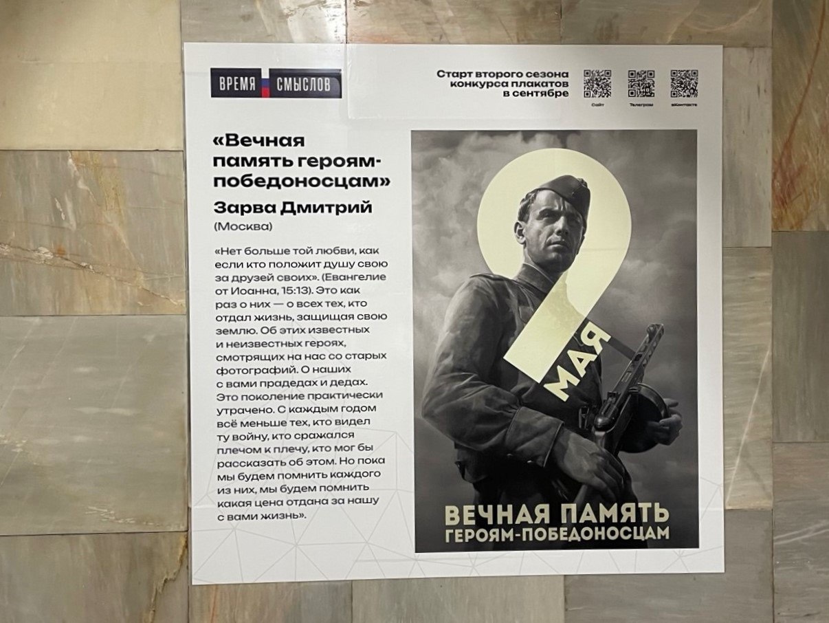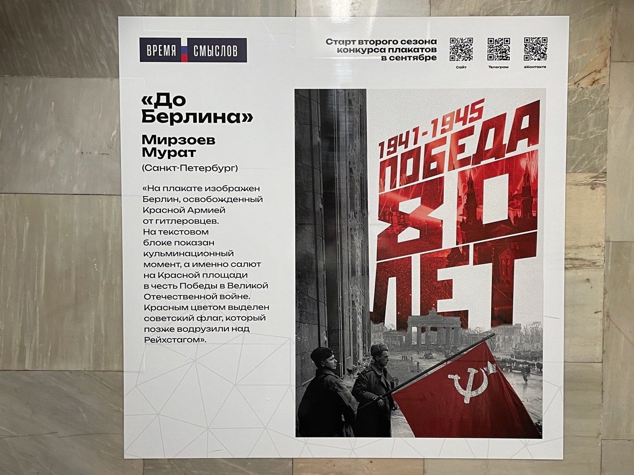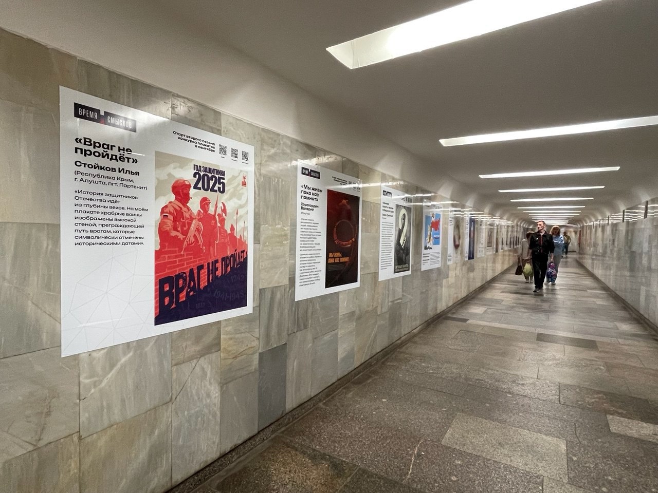 В переходе между станциями метро «Красный Проспект» и «Сибирская» партнеры патриотического забега «От Победы к Победе!» открыли выставку работ победителей всероссийского конкурса современного плакатного искусства «Время Смыслов!».