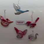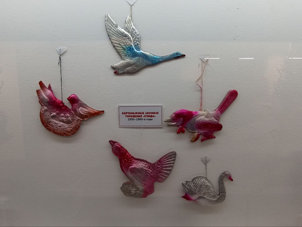 Особое место на выставке занимают ёлочные игрушки и открытки с изображением животных, которые создают праздничное настроение в преддверии Нового года.