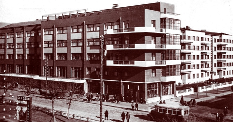 — Эта гостиница строилась по определённым технологическим приёмам, которые соответствовали самым передовым технологиям. Понятно, что материалы были невысокого качества. Очень интересно решена динамика: угловые балконы выведены на торец, использованы разные формы эркеров — полукруглые на лестничной клетке и прямоугольные в торце корпуса, — рассказывает об особенностях объекта Игорь Викторович. — Всё тело фасада было выкрашено в тёмно-шоколадный цвет, а внутренние части — в светло-шоколадный. Белые ленточные ограждения балконов подчёркивали его конструктивную структуру. Окна верхних этажей смотрелись как цельное ленточное окно. Этого ленточного продолжения хотел и жилой дом, но наш конструктивизм не имел такой технологической базы, как в Европе, поэтому окна часто просто рисовали лентами, выделяя цветом, как это сделано на фасаде дома по улице Октябрьской. Но вот пришёл 1938-й год, этот шоколадный цвет начинает кого-то раздражать, и дом перекрашивают. Это перекрашивание, я считаю, нанесло первый значительный удар по тектонике конструктивизма и идее авторов.