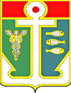 Первый герб Н. утвержден в 1973: щит рассечен зеленью и лазурью, глава червленая. Поверх всего положен серебр. якорь. В правом поле серебр. кадуцей, в левом 3 серебр. рыбы.