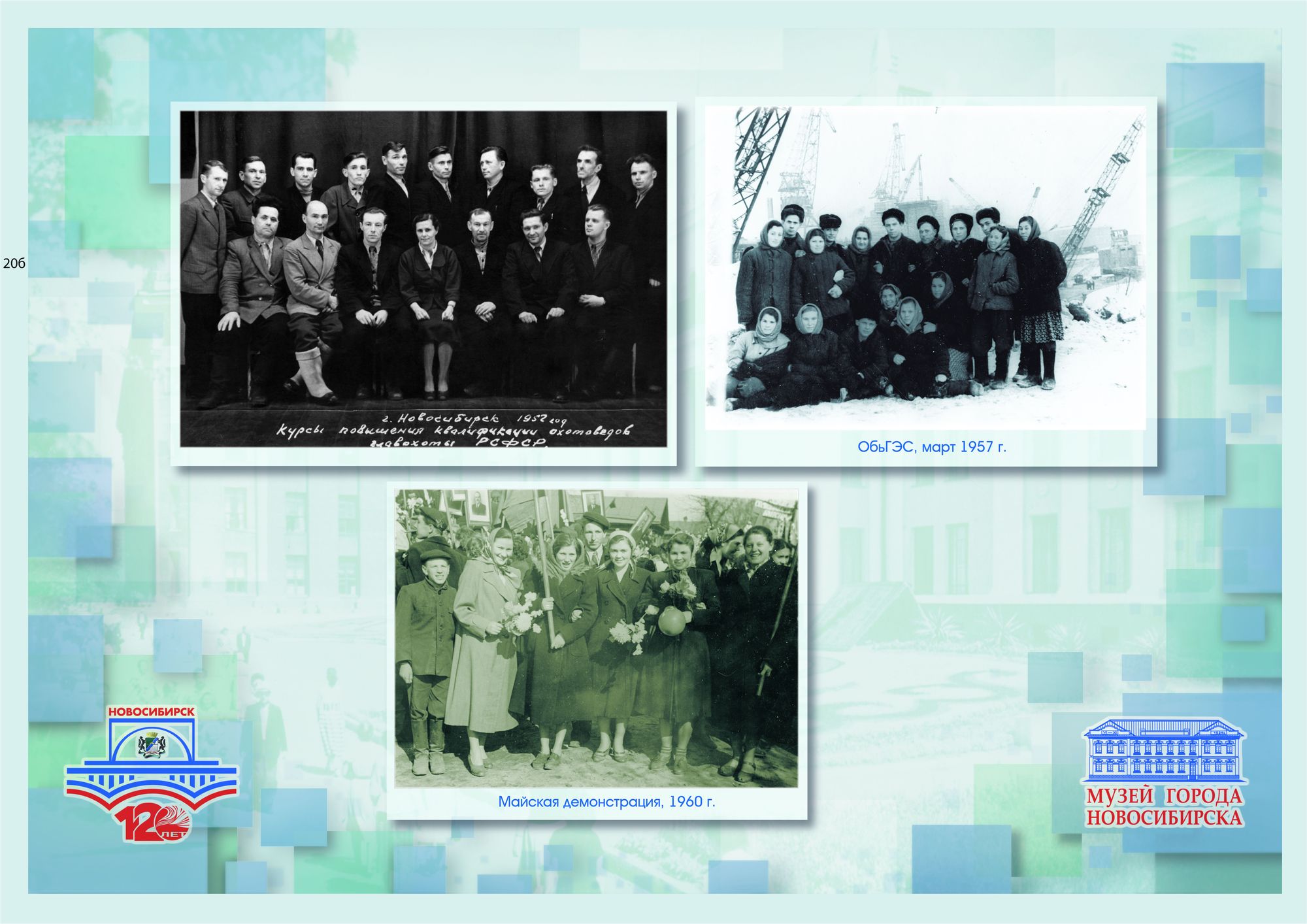 Зрители увидят 120 групповых снимков, на которых изображены разные Новосибирские коллективы прошлых лет - детский сад 30-х годов, лучшие народные судьи 50-х и строители ОбьГЭС.